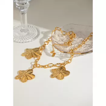 18K Gold Plated Five Petal Flower Pendant Necklace